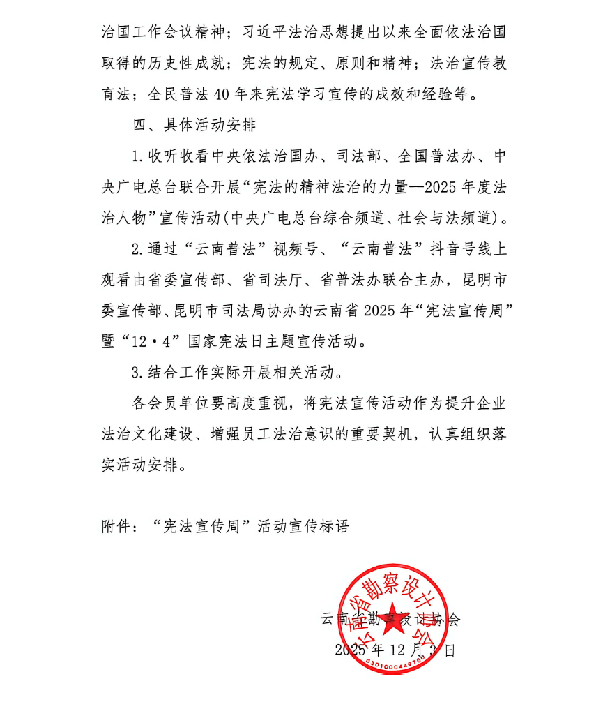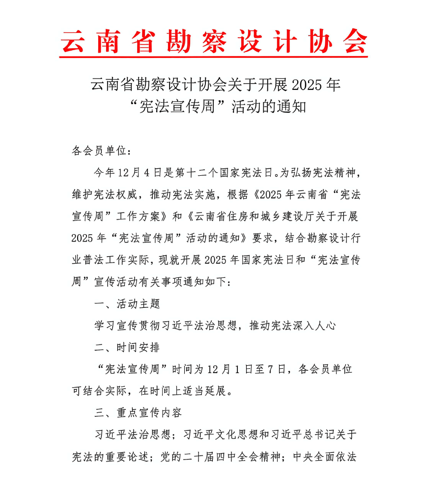 云南省勘察设计协会关于开展2025年“宪法宣传周”活动的通知