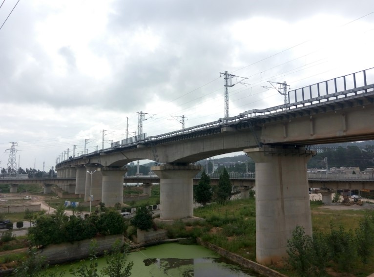 昆阳互通式铁路立交是一个大型铁路互通式立交工程,是整个昆玉铁路控制工程之一,也是昆玉铁路的重点、难点工程;互通连接昆玉铁路、昆枢东南环铁路、中宝铁路、昆阳支线铁路4条铁路线路,整个立交层次为3层,共设置5座疏解线铁路桥梁、1座主线铁路桥梁,其中疏解线铁路桥梁总长3497.2m,主线长度2779.0m;该互通式铁路立交控制因素较多,有既有城市道路、既有铁路及改建铁路路基、互相交叉的铁路桥梁等,设计根据现场实际情况,采用了预应力混凝土连续梁(悬灌施工)、简支T梁等多种桥梁结构形式相结合的布置形式,下部采用圆端形桥墩。该设计方案能够有效减小施工对既有道路、铁路运营的干扰,很大程度上减小了施工难度及投资成本,桥梁上、下部结构形式协调统一、简洁流畅、轮廓分明、桥下通透、美观,能很好的与周围环境相协调。