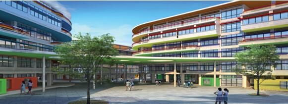 1、地方特色结合新颖的造型:学校位于“七彩云南”的省会昆明,在这里,得天独厚的自然资源和丰富多彩的人文环境相互交融。蓝天白云、红土高原、绚丽的民族服饰,如此和谐的融合在同一幅画面中。学校的整体构思来自于打破传统的教学楼的简单排列,通过呼应周边规划道路,将体块旋转和连接,化成了一道“七彩的虹”。七彩外廊、架空庭院、叠加的退台和进退的教室在弧形轴线的组织下变得流动起来。流动体块的交汇处通过两层的架空大棚将变化的形体拉结在一起。体现了严谨的几何构图关系。