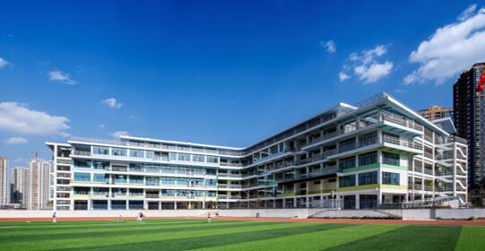 云南师范大学附属润城学校位于昆明市前卫西路与日新路的交叉口,学校占地102.32亩,按云南省一级一等完中,一级示范完小标准建设,设54个小学班,36个中学班。新校区总建筑面积(含地下) 92810.80平米。其中:中学、小学教学楼总建筑面积:49500平米,投资11198万元,地上六层,建筑高度23.8米。建筑的南面是校前环形景观入口广场及城市道路主入口;东侧为小学运动区及食堂、体育馆和学生宿舍;西侧为中学运动区;北侧为行政办公楼及出入口。校区功能分区明确,布局合理,交通组织有序。建筑通过流畅的弧形轴线组织广场、庭院、连廊、退台、景观、小品、展览空间等,形成了浑然大气又不失活泼变化的空间及外观特质。难能可贵的是,流动的弧形空间形态没有影响校园的整体功能和建筑内部的使用。中、小学教学楼得到了使用者的一致好评。